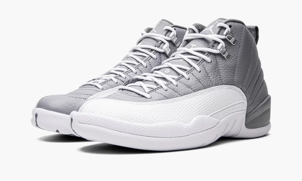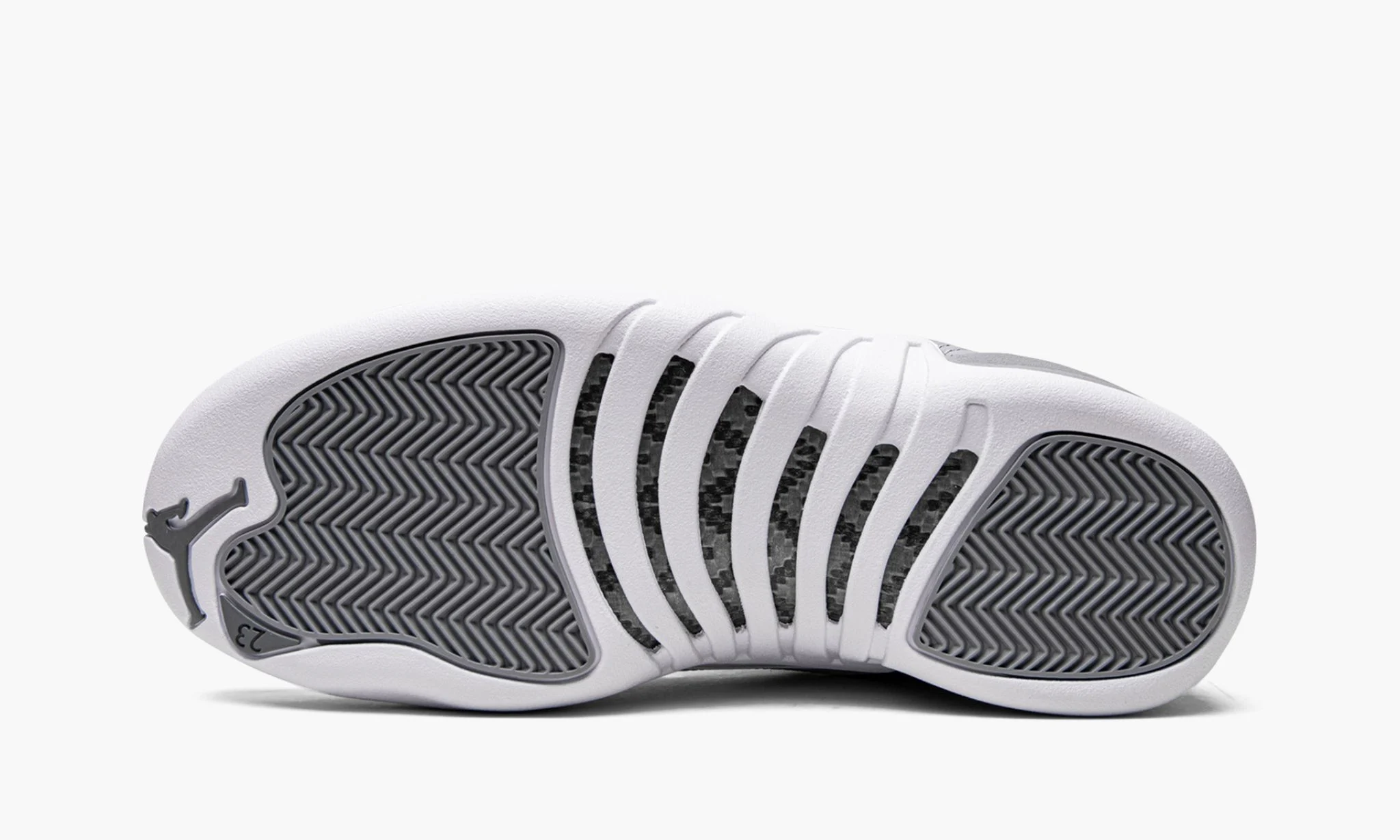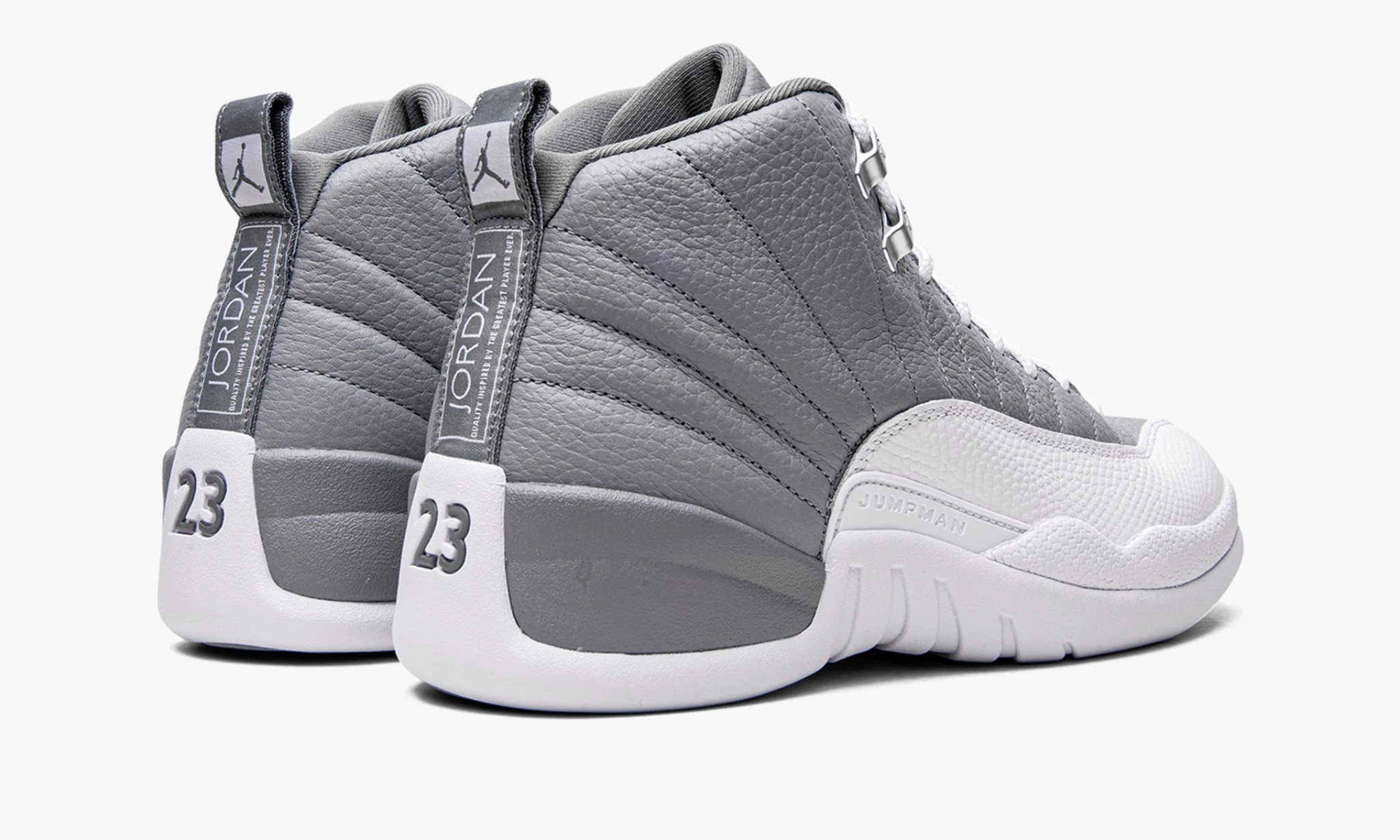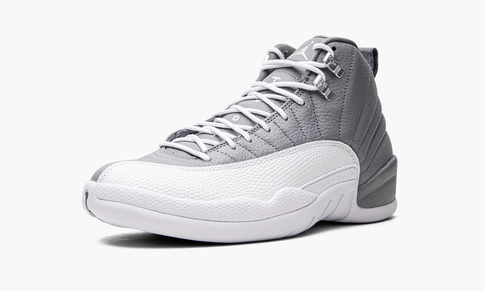 The Air Jordan 12 “Stealth” is a versatile, two-tone grey-and-white colorway of the retro basketball shoe. Originally released in 1997, the Jordan 12 was worn by Michael Jordan with the Chicago Bulls during the ‘96-97 NBA season, and in the ‘97 NBA Playoffs. Here, the “Stealth” honors the shoe’s 25th anniversary, and it doesn’t disappoint. Details include a Stealth Grey tumbled leather upper paired with a white pebbled mudguard. The color block is reminiscent of the Jordan 12’s “Obsidian” colorway. Metallic Silver eyelets appear on the collar, and a grey nylon pull tab is found on the heel. Tonal “Jumpman” branding appears on the lateral side of the midsole.