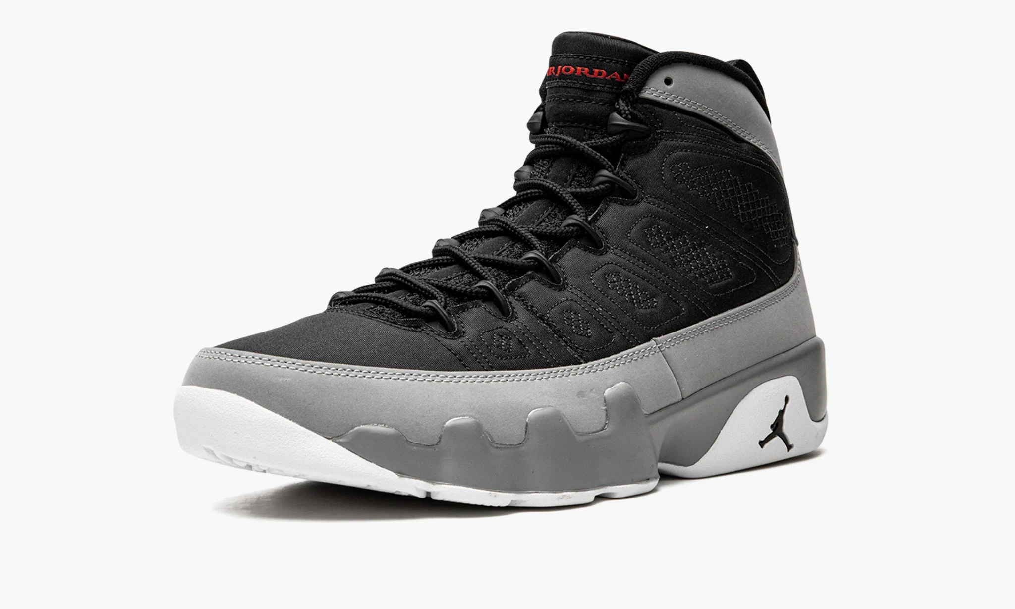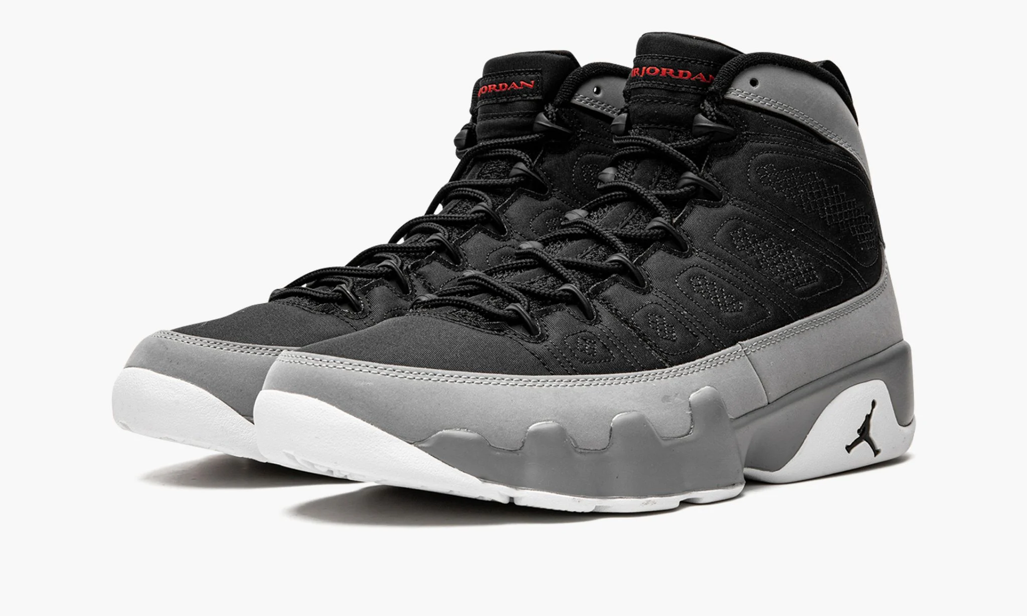 The Air Jordan 9 “Particle Grey” is a June 2022 release of Michael Jordan’s ninth signature shoe in a colorway with neutral black and grey accents. The color scheme is an unofficial nod to the colorway of the Jordan 9 Cleat that Michael wore with the Birmingham Barons minor league baseball team in 1994, as well as a salute to the Jordan 9’s “Barons” and “Baseball Glove” colorways. While the “Particle Grey” isn’t an exact copy of any of these colorways, its black and grey details nonetheless show appreciation to the looks. The upper is constructed in a black textile with a Particle Grey leather mudguard. Classic Jordan 9 branding is found on the tongue, heel and midsole.